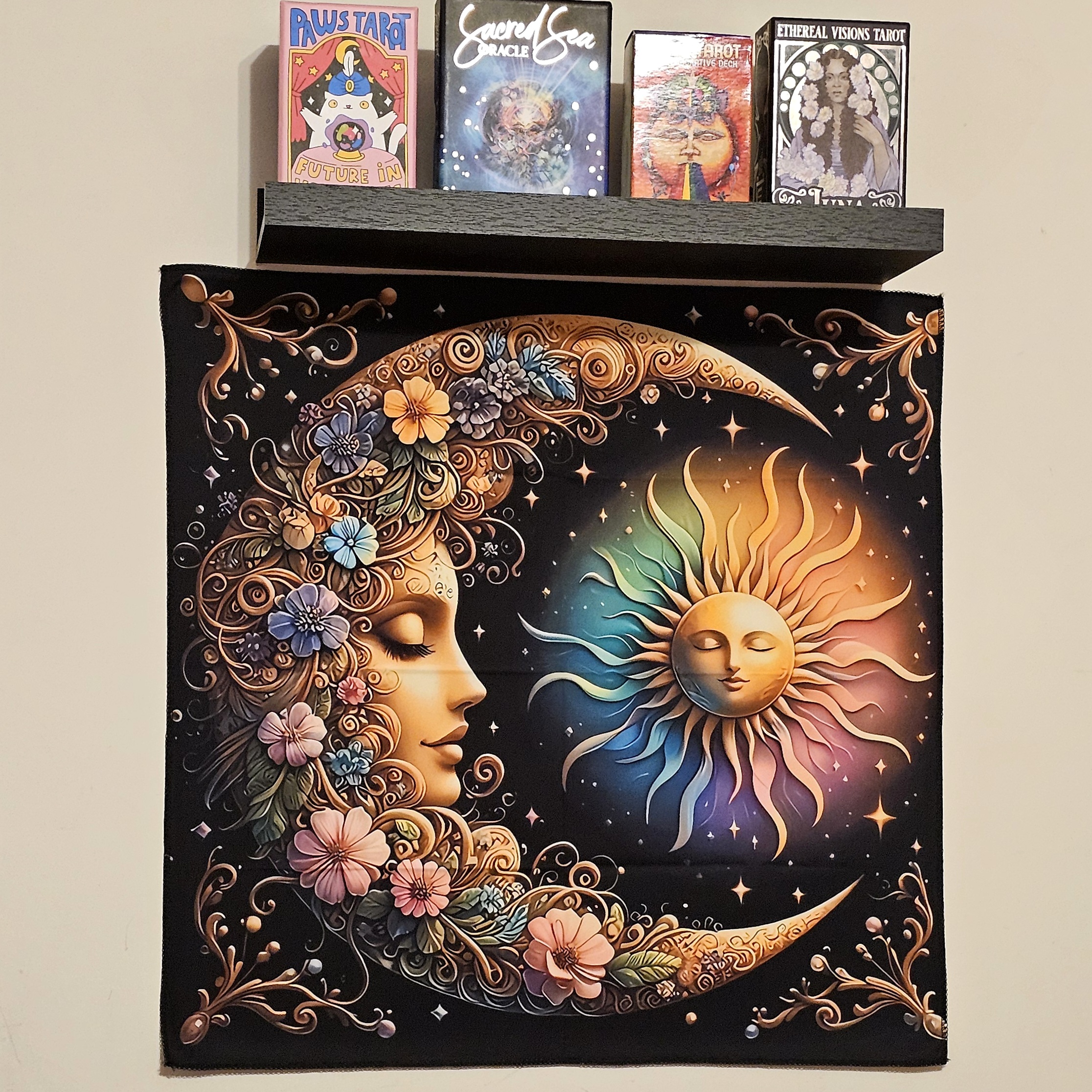 Moon & Sun – Black, Gold, Rainbow, Triple Moon Goddess – Blue & Beige, Moon & Sun – Blue & Gold, Cats – Celestial Ying Yang, Triple Moon Symbol – Purple, Pentagram – Purple & Blue stars, Zodiac – Black, Black Cat Moon – Purple