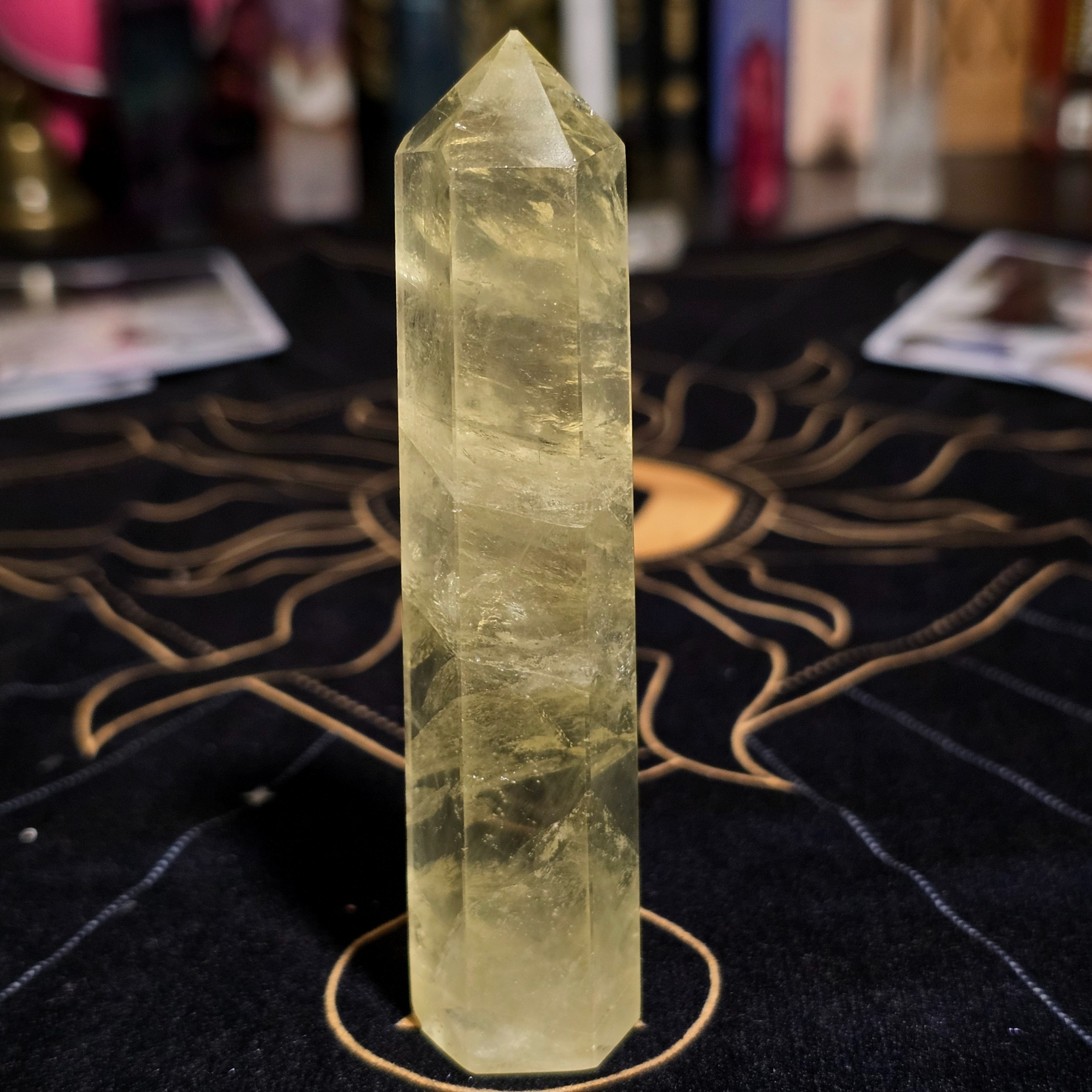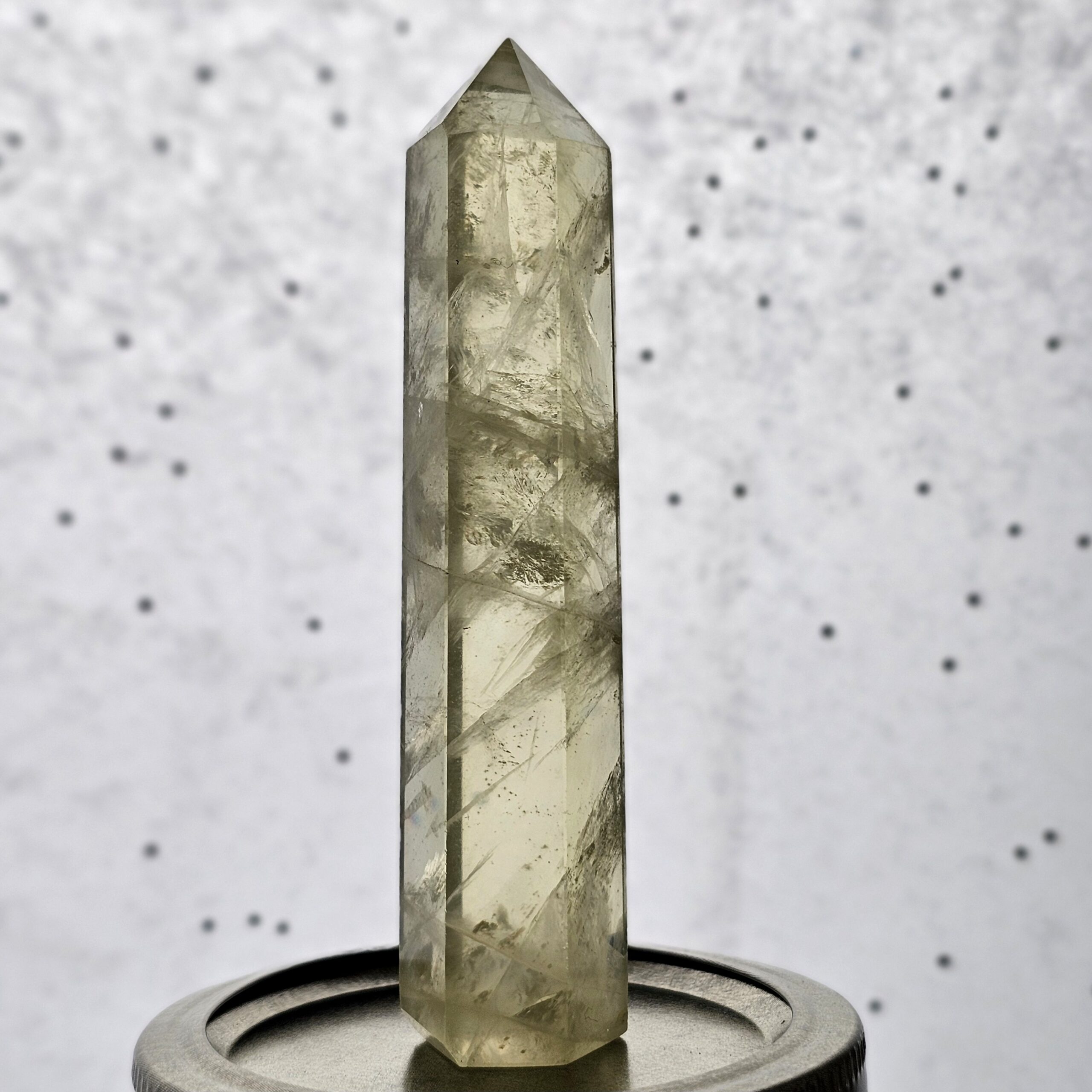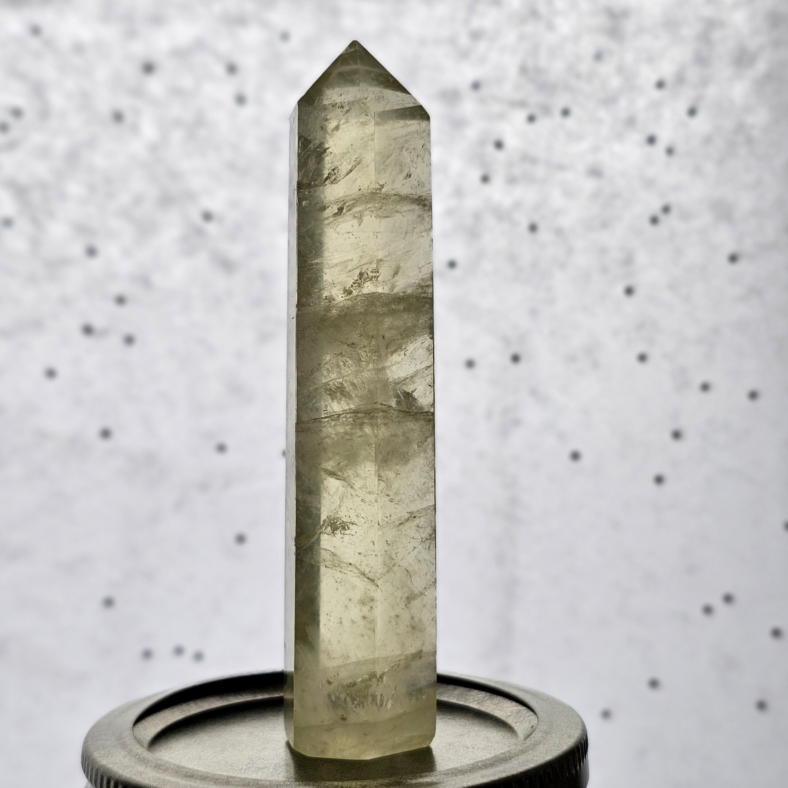 This Heat-Treated Amethyst Citrine Tower displays warm golden tones created through the gentle heat treatment of natural amethyst. This common and widely accepted process transforms amethyst’s purple hue into rich shades of honey and amber while preserving the crystal’s natural quartz structure.